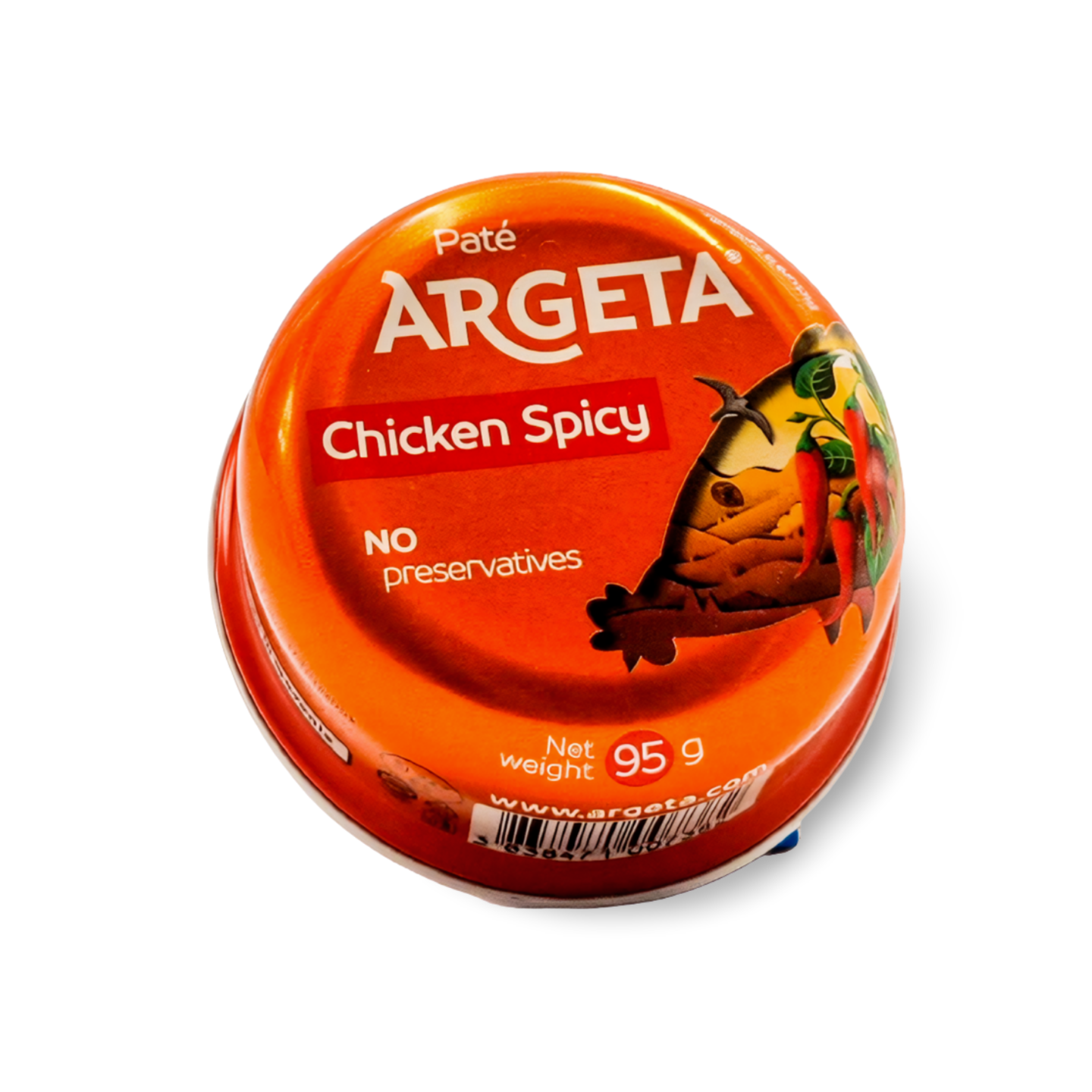 A zesty and smooth chicken pâté enriched with real red pepper and chilli heat, produced by Argeta. Made using mechanically separated chicken enriched with milk and soy proteins, this gluten‑free spread has no artificial preservatives, colours, or flavours. Great for sandwiches, crackers. Winner of a Superior Taste Award.