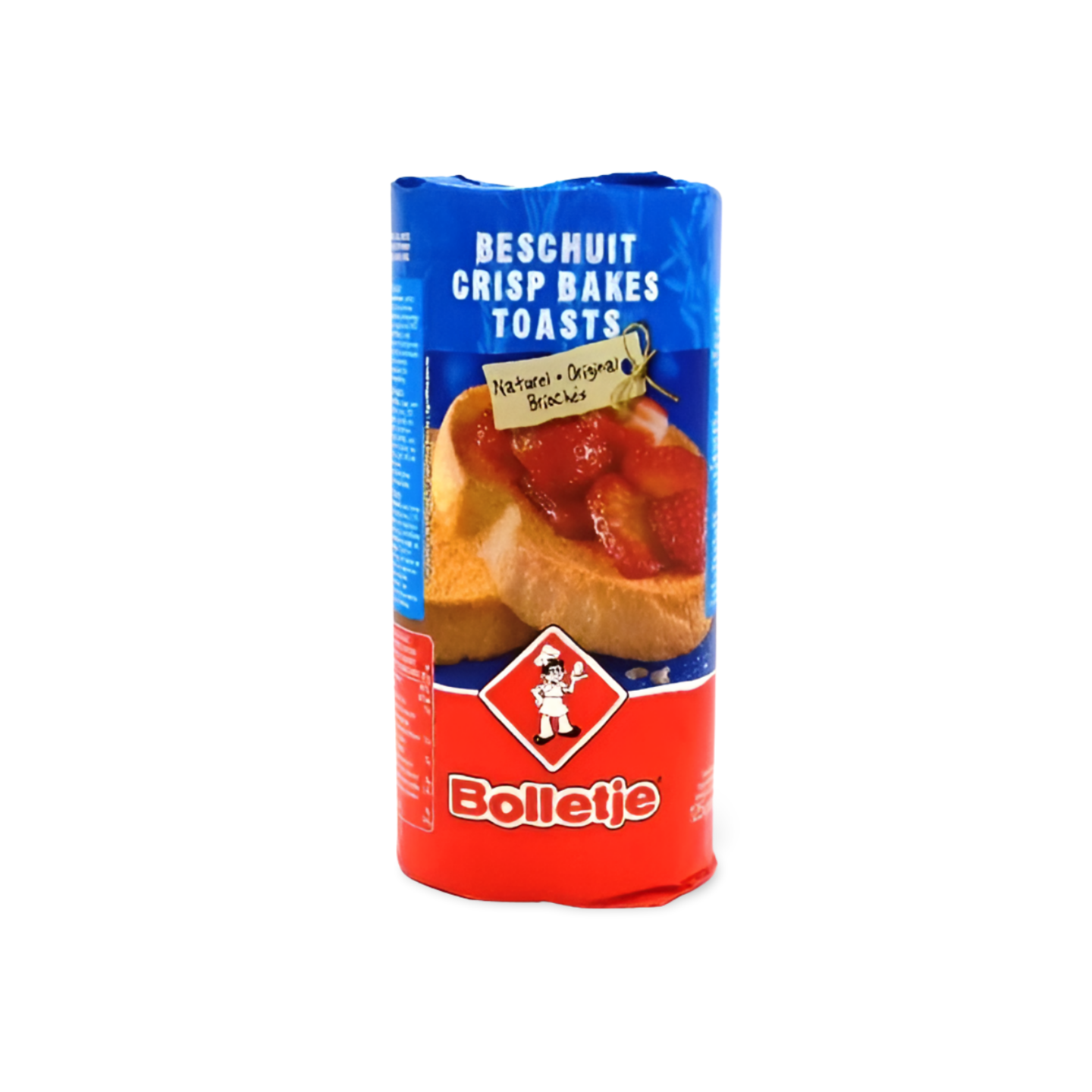 Bolletje Crispbakes Original, known as "beschuit" in Dutch, are traditional light and crispy rusks from the Netherlands. These twice-baked breads have a delicate texture and a subtly sweet flavor, making them versatile for both sweet and savory toppings. Enjoy them with butter and sprinkles for a classic Dutch treat, or pair them with cheeses, spreads, or fresh fruit for a delightful snack or breakfast option.