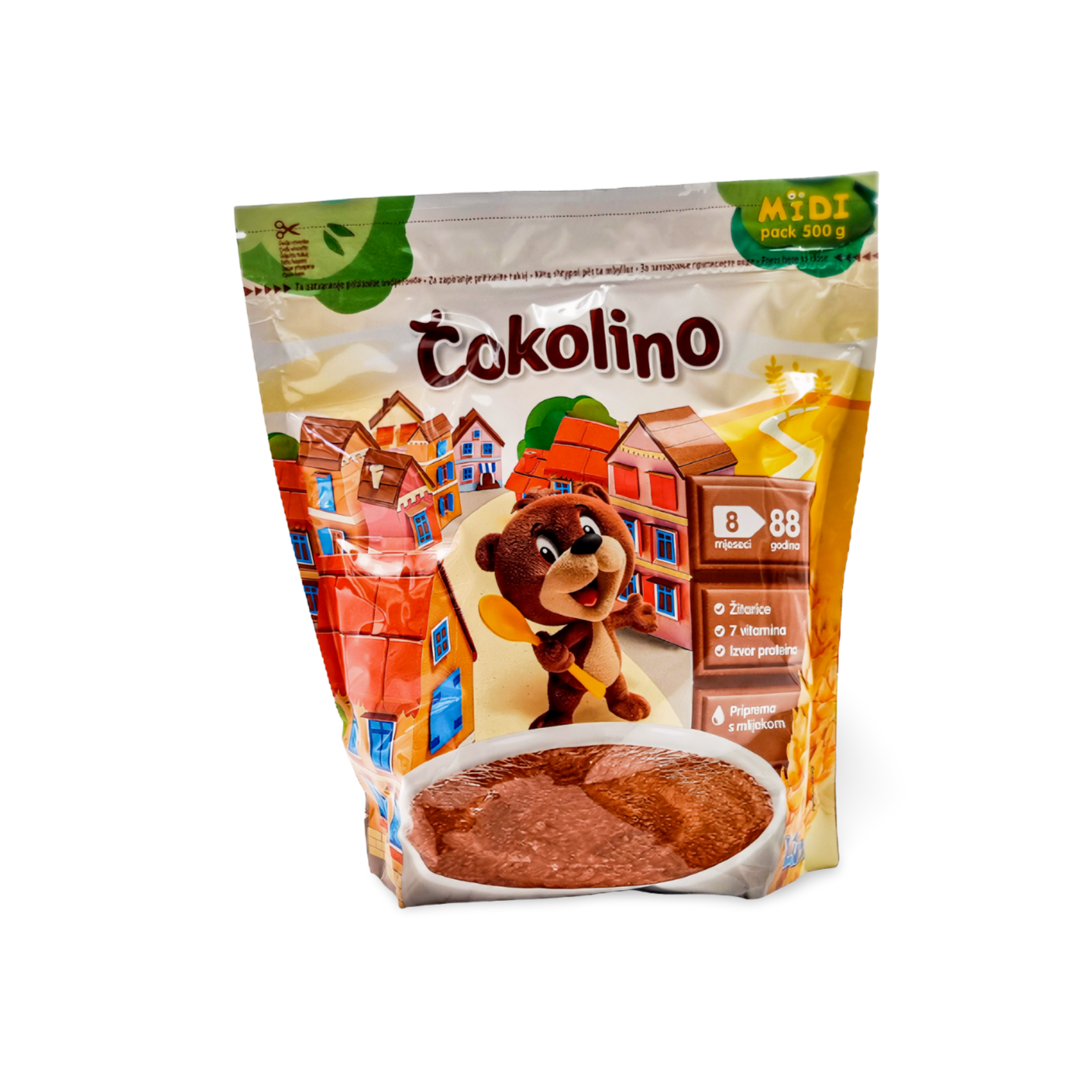 Enriched with 7 vitamins (B1, B2, B6, C, E, niacin and folic acid) and prepared with 2 dl of milk, this delicious meal has an optimal ratio of carbohydrates, fats, proteins and energy to provide all essential nutrients for children in the period of growth and development.