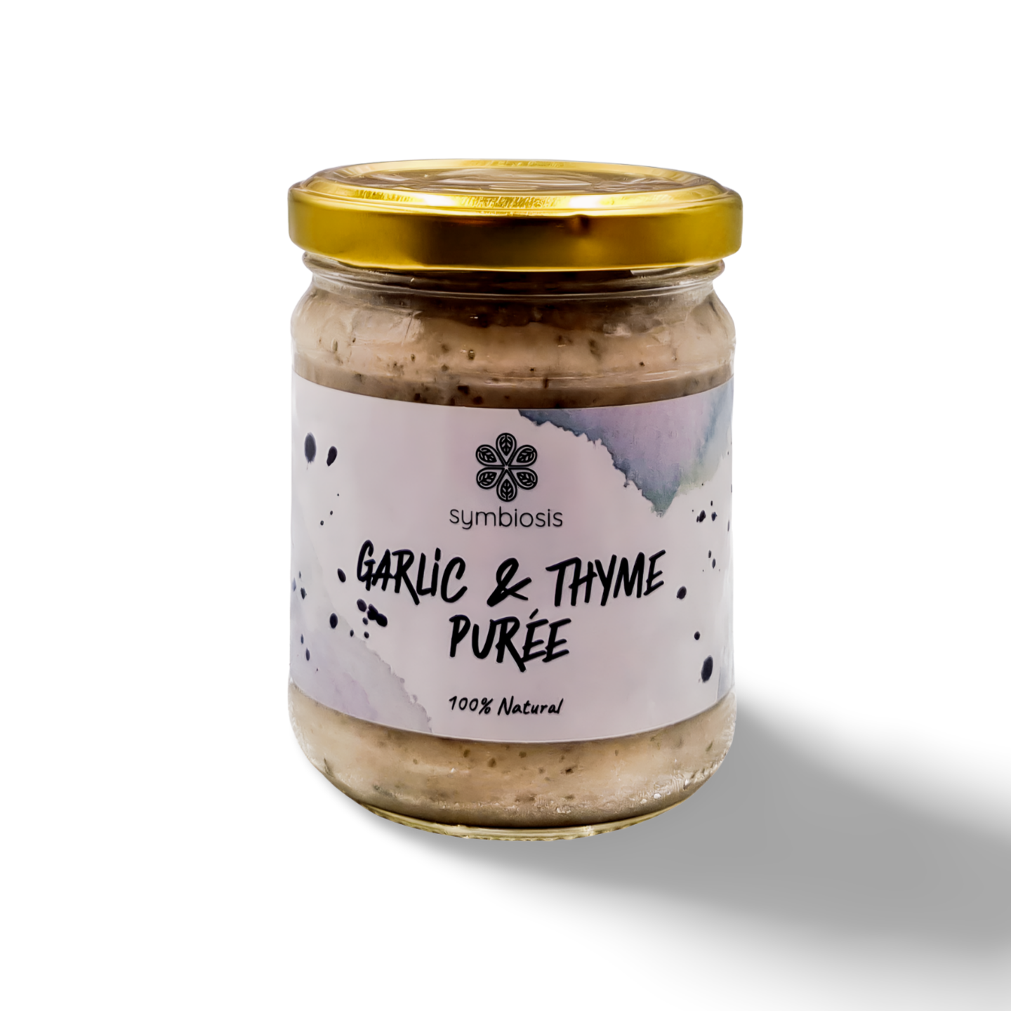 A richly savoury garlic paste blended with fragrant Thyme—ideal for enhancing sauces, marinades, dressings, and spreads. Smooth, creamy, and bursting with bold garlic flavour, Perfect as a condiment, dip, or ingredient, adding a rich and savory touch to breads, meats, roasted vegetables, or your favorite recipes. A must-have for garlic lovers!