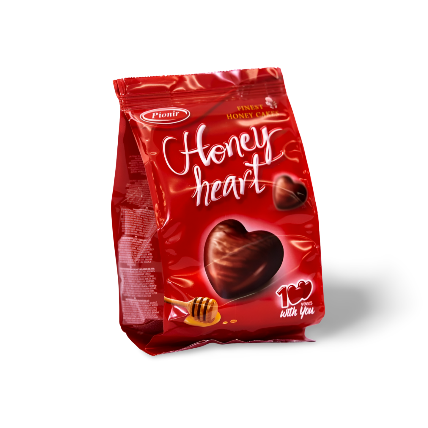 Ingredients: wheat and rye flour, sugar, honey (15%), dextrose, spices, raising agents (ammonium hydrogen carbonate, sodium hydrogen carbonate), acidity regulators (potassium carbonate, lactic acid, citric acid), fruit filling 25% (apple pulp, apricot pulp, sugar, glucose syrup, apple–orange juice concentrate, citric acid, preservative potassium sorbate), chocolate coating 20% (cocoa mass, sugar, cocoa butter, emulsifiers sunflower lecithin and E476), may contain traces of hazelnuts, milk and egg