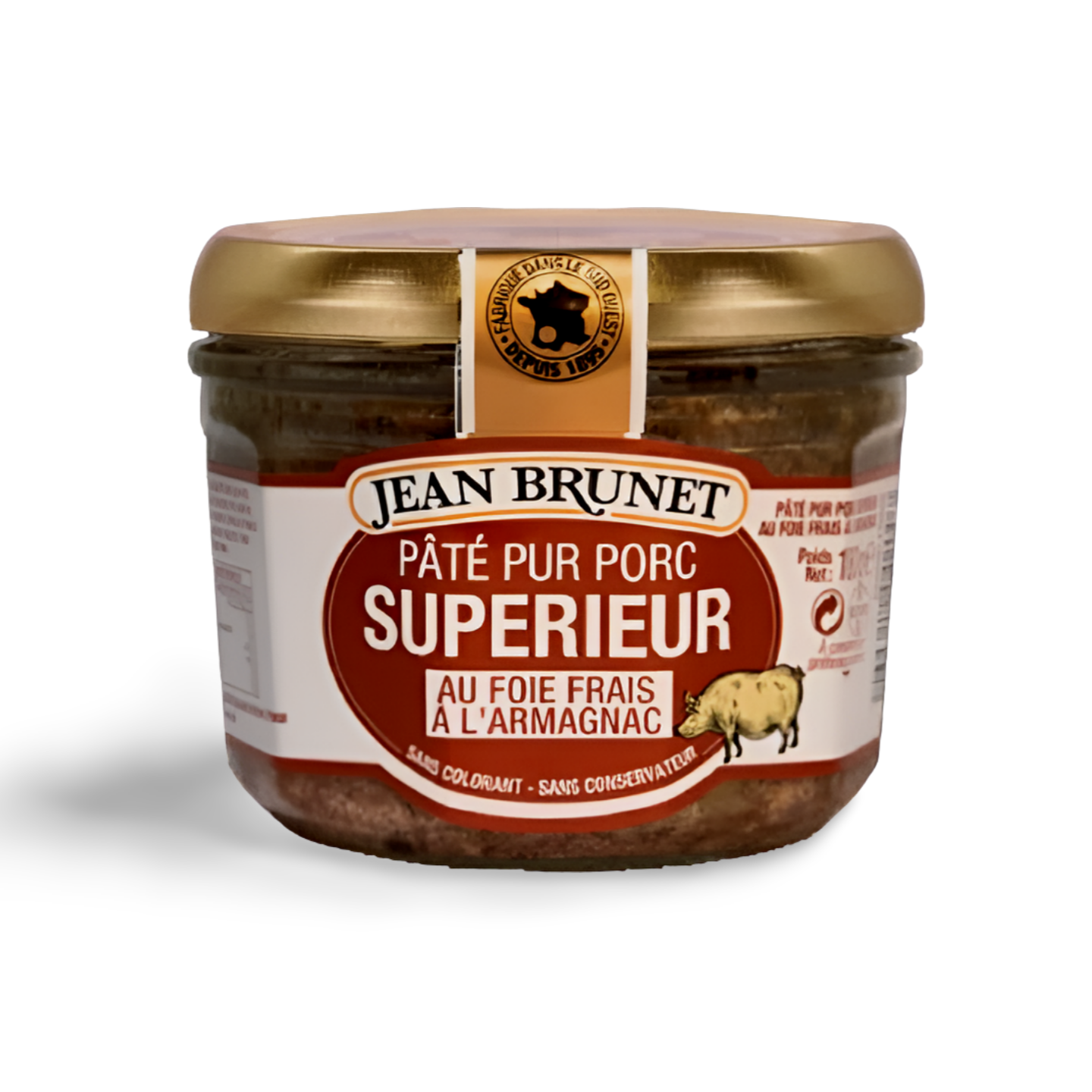 Savour the luxurious taste of Jean Brunet Pork with Brandy Pâté, a traditional French delicacy crafted from premium pork and enriched with the warming notes of brandy. Perfectly textured and full of flavour, this pâté is ideal for spreading on crusty bread or pairing with crackers for a sophisticated appetiser. Free from preservatives and additives, it embodies authentic French culinary excellence. Treat yourself to a gourmet experience with Jean Brunet's artisanal expertise.