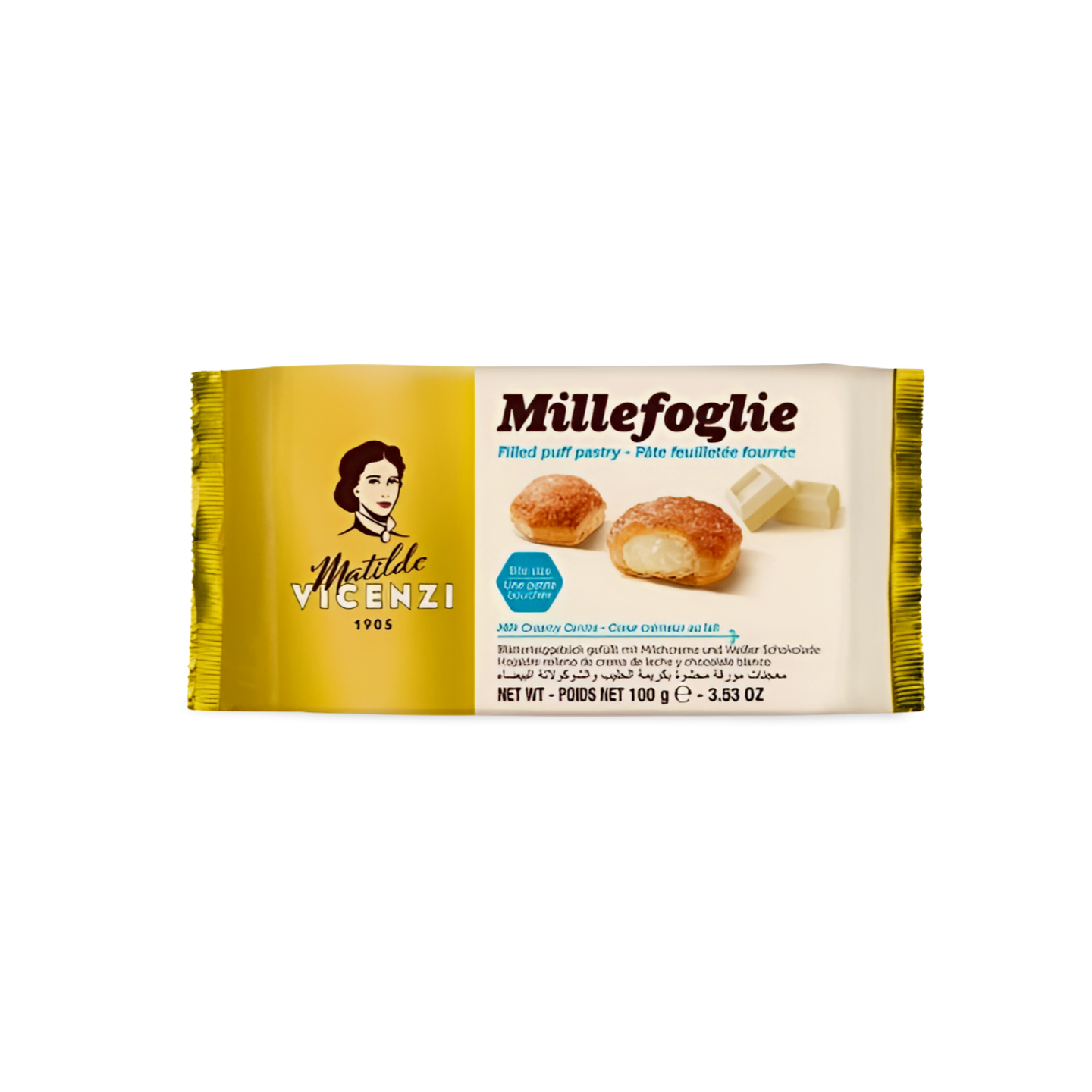 Savor the elegance of Vicenzi's Millefoglie d'Italia—a bite-sized puff pastry filled with delicate milk cream. Each pack contains pastries made with crispy layers and a touch of premium butter, embodying the finest Italian pastry tradition. Perfect for indulgent moments or sharing with loved ones.
