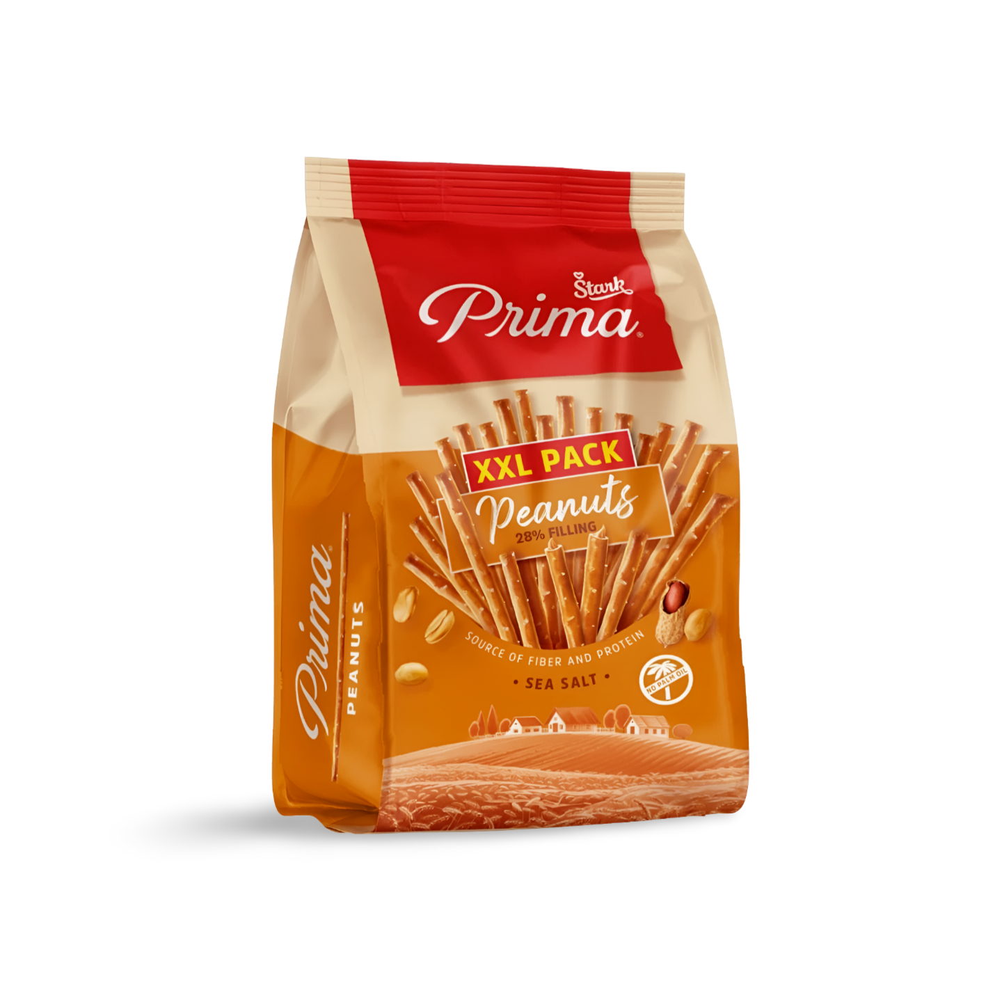Thin, salted pretzel sticks injected with creamy peanut filling—offering a delicious contrast of crunchy pretzel exterior and smooth nutty interior. A satisfying snack loved by families across the Balkans, perfect for merchandising, school lunchboxes.
